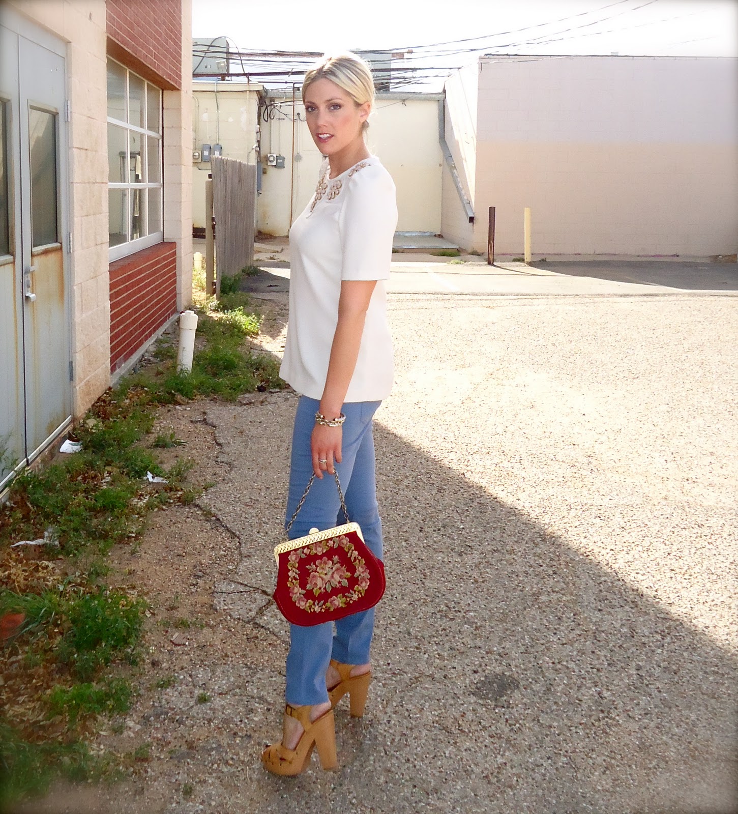 I was reunited with an old friend today as I rummaged through my closet in search of my outfit. This embellished Karta top was my favorite a few years back, and I’m thrilled to bring it out of hibernation. If you haven’t heard of Karta, check them out. Embellishment is their specialty. Classy embellishment, of course! Paired with pastel blue pants made for a spring ready look.