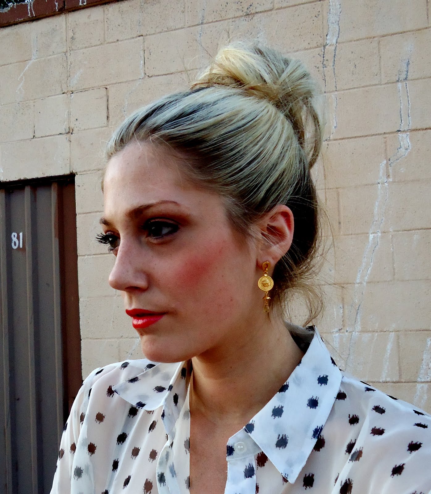 LOVE those little earrings – very much my style. I wish I could get my hair to do this because it looks so sophisticated!