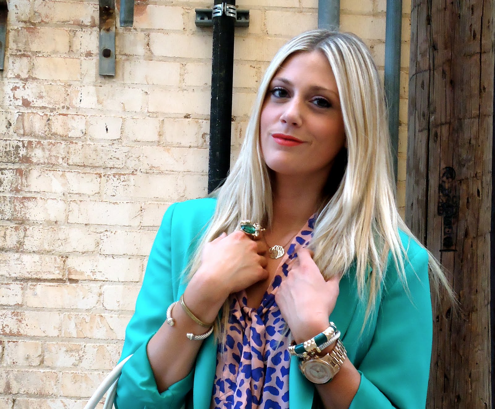 Great look! I love that turquoise blazer- such a cool pop of color!