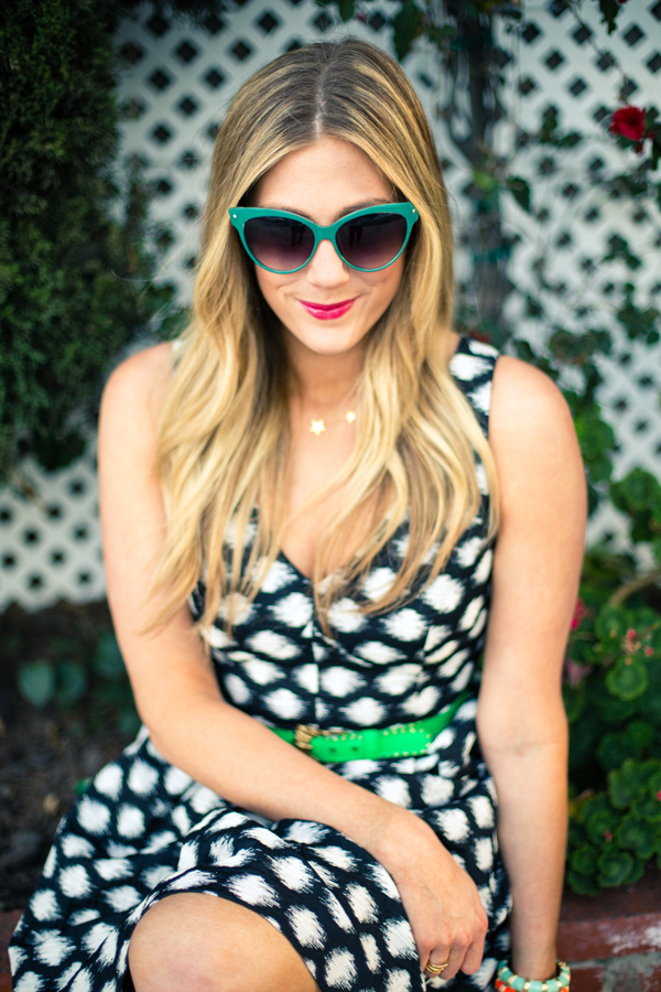 Love the bright pink lips and teal sunnies. The sSepford look totally works on you! 😀