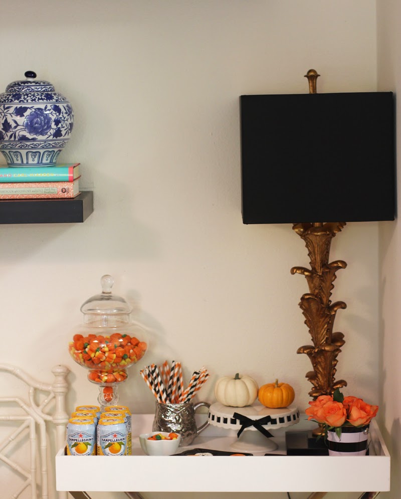 ahhh! the bar cart is sooo freaking CUTE and I loveee the pumpkins on the mantle! I need to get on this decorating…