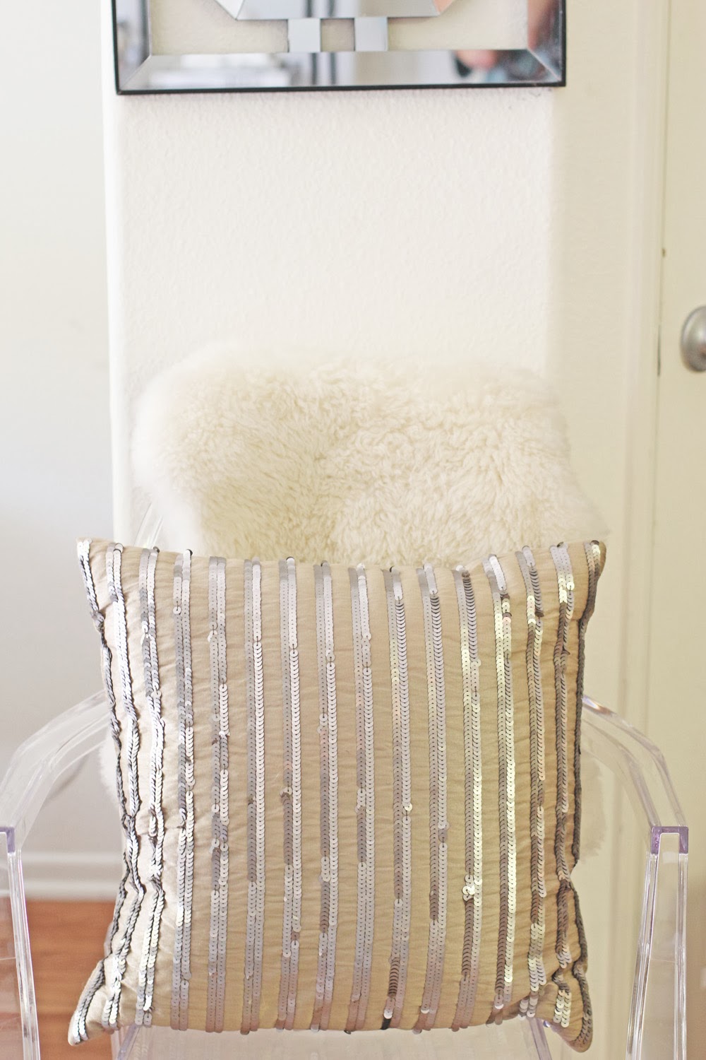 I pulled out this sequin pillow from my pillow hoarding stash (don’t judge). I got it years ago at Target, and haven’t used it in a while. I thought it looked pretty cute in my ghost chair from Lulu & Georgia, so I’ll keep it out this season.