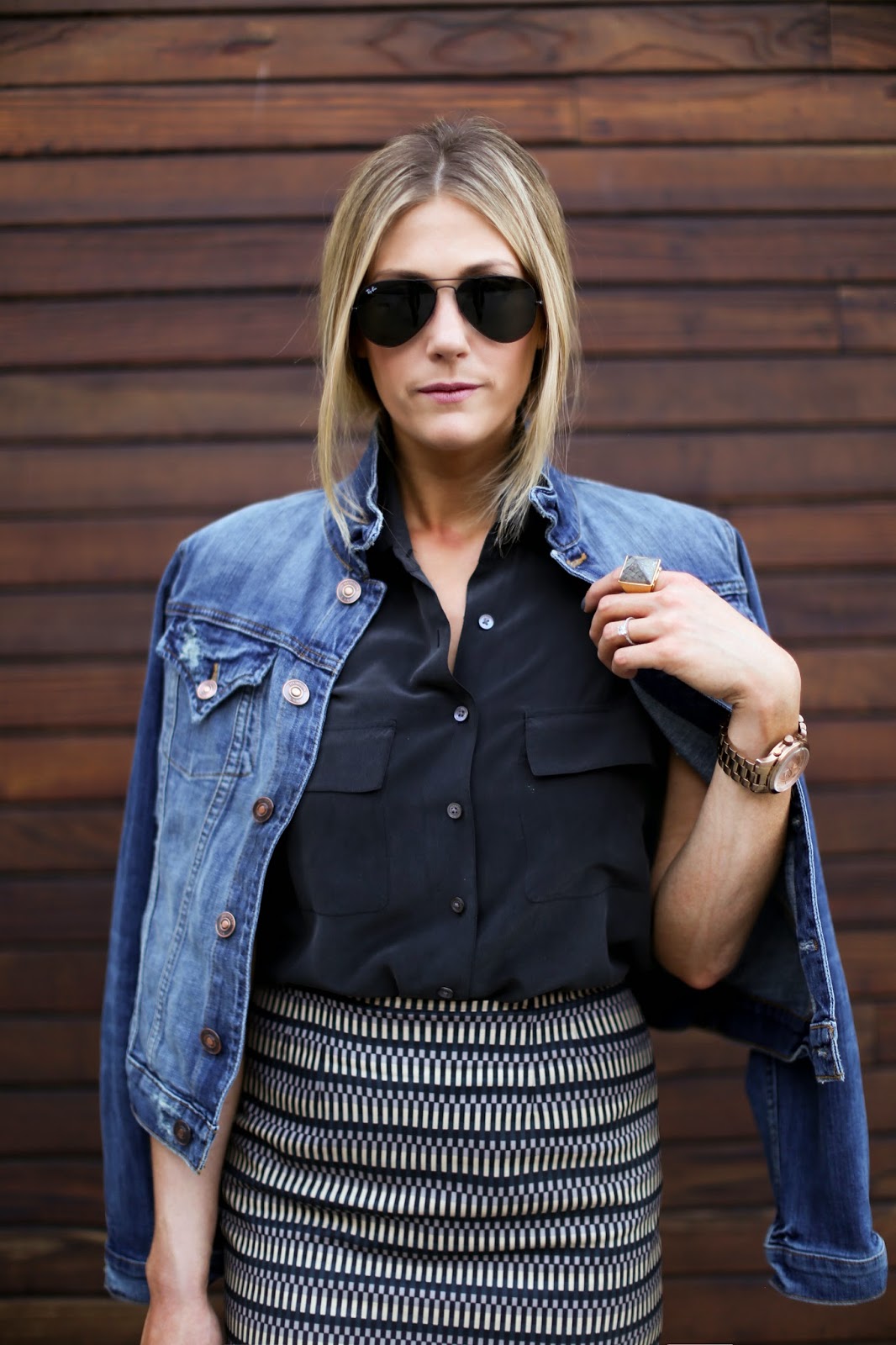 You can't beat Equipment shirt and a good denim jacket either! Cool look.