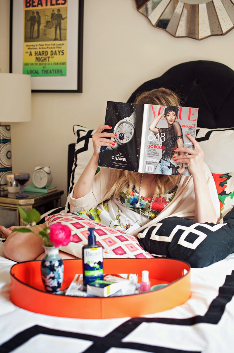 my comfortable bed while painting my nails (in a tray—I know I’m bad), reading