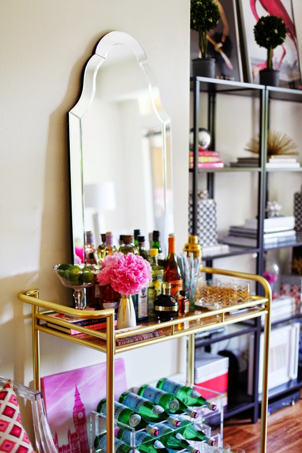 bar cart. I change my little gal up on a regular basis, switching out vodka for