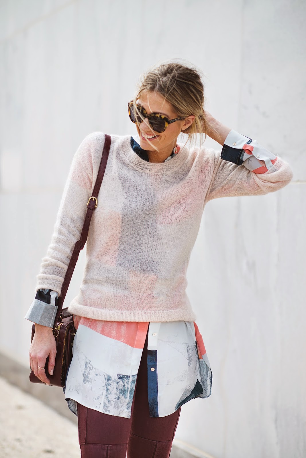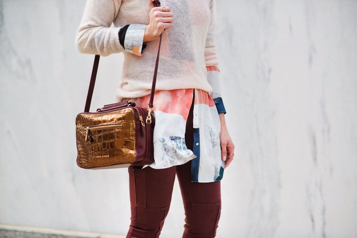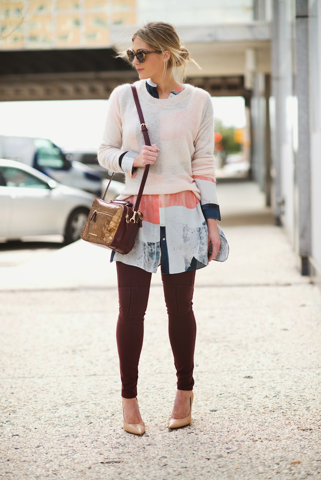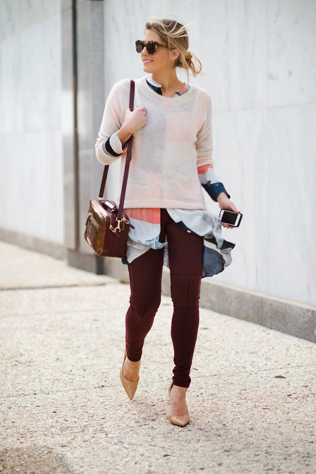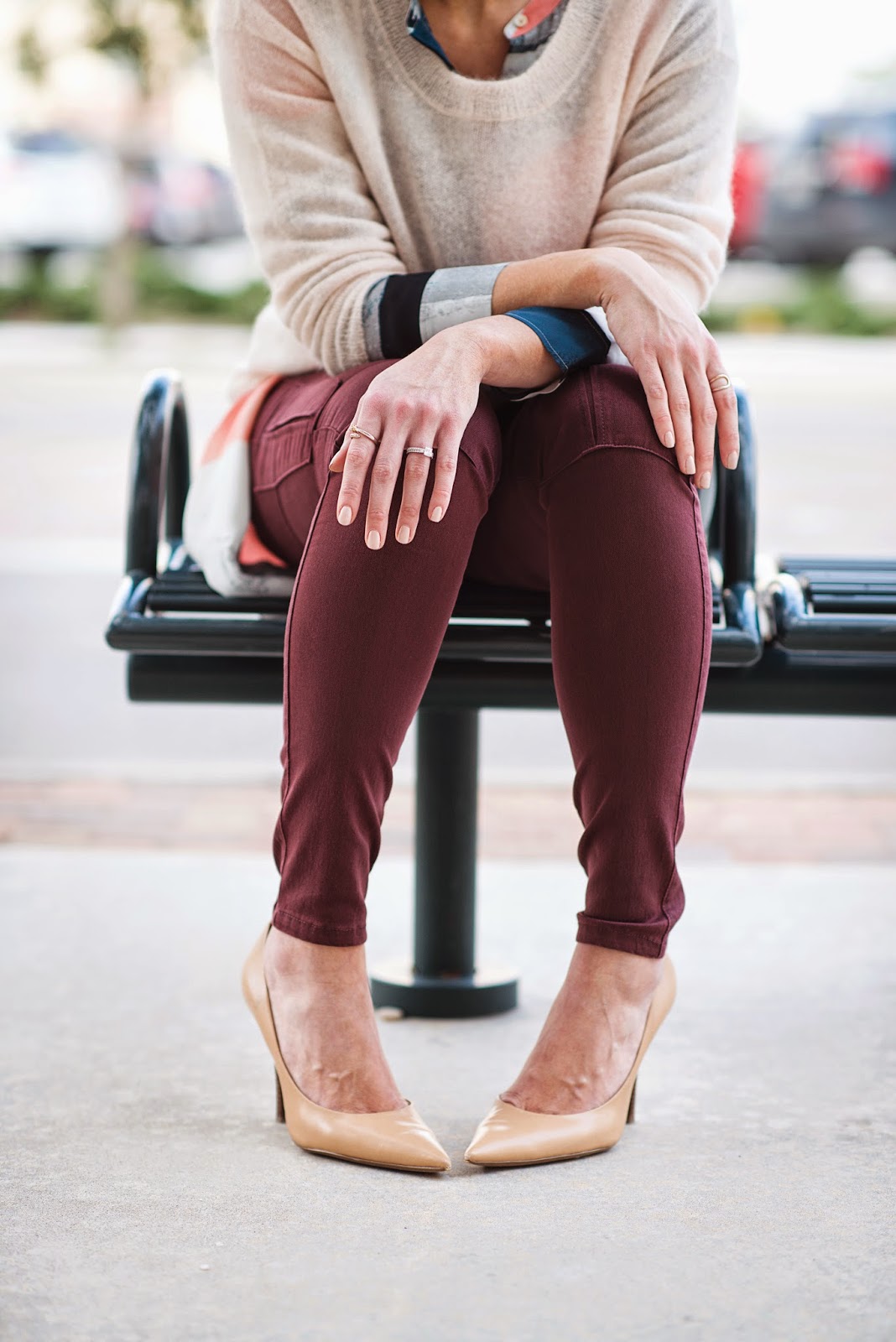 I love the layering and can't get my eyes off of those burgundy pants. Gorgeous!