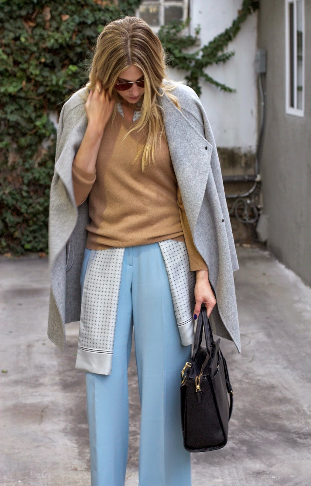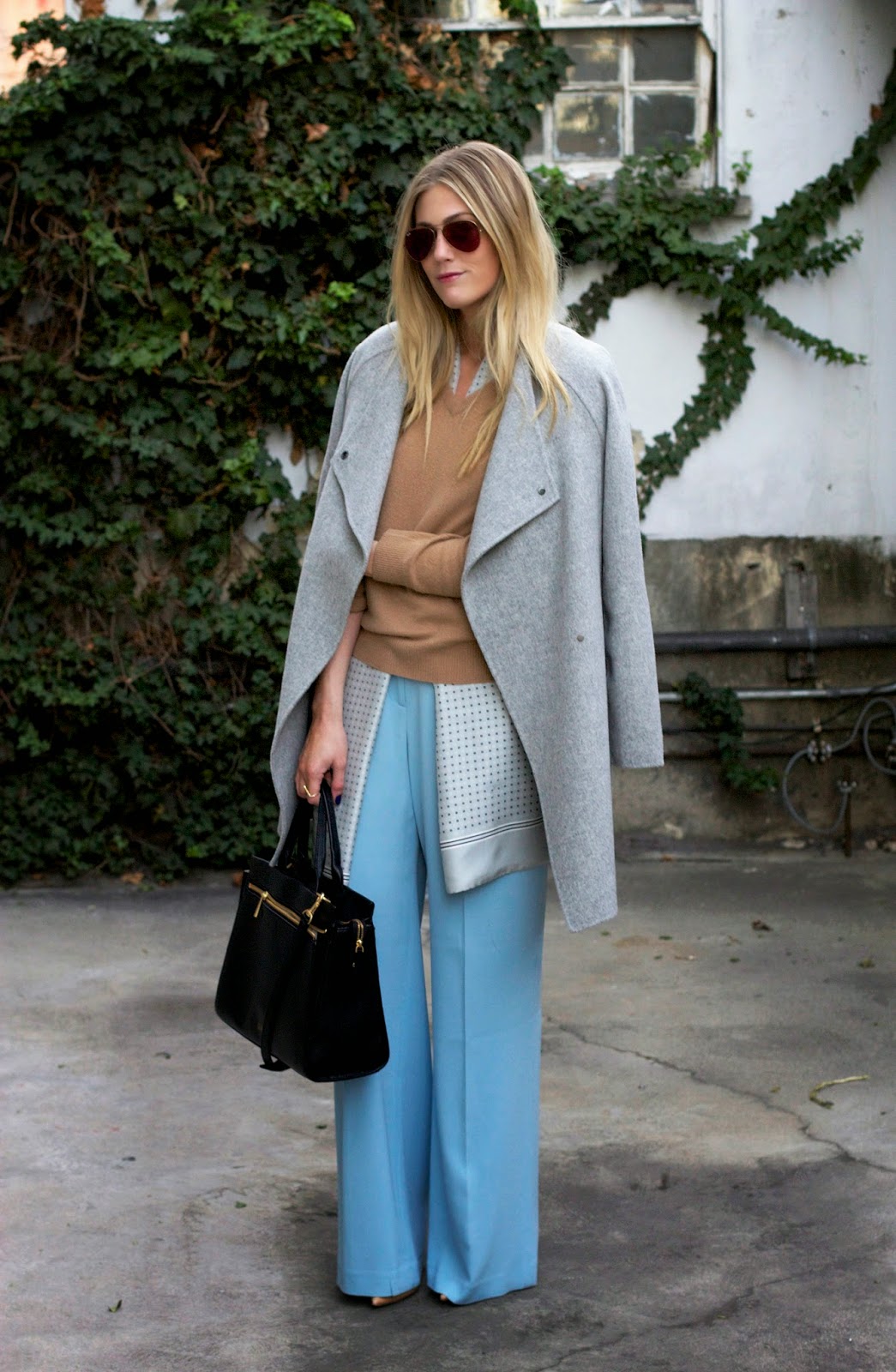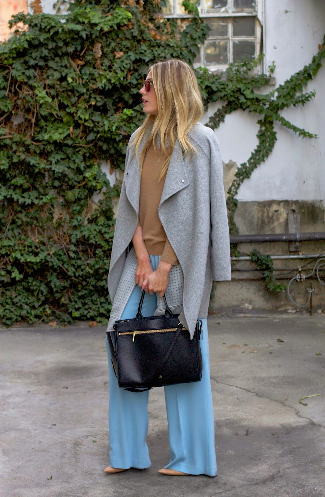 Love the colours in this outfit! The light blue and grey are both lovely.