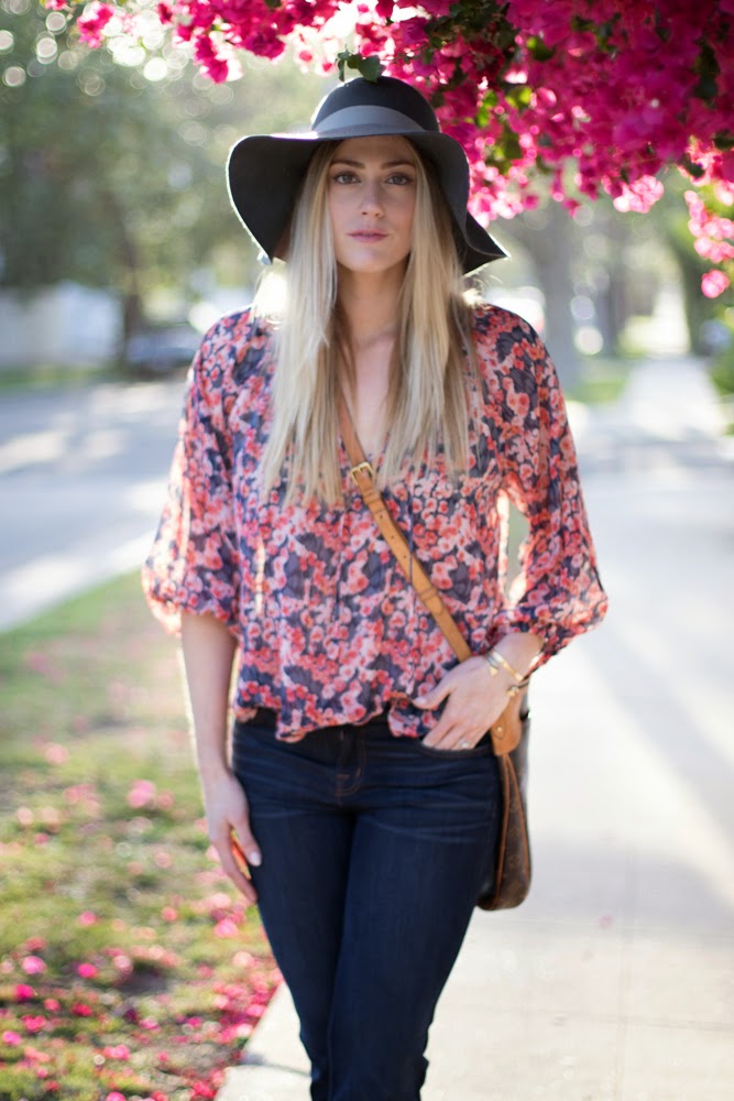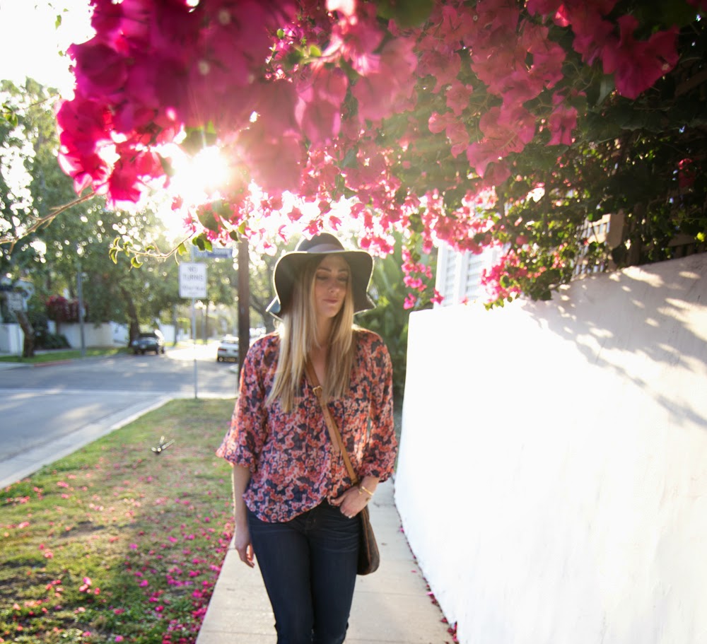 Blouse: Joie (25% off the entire site until 3/23!) // Jeans: J Brand // Bag: Louis Vuitton // Hat: Nordstrom (old, similar here) // Bracelets: Jet Set Candy, Madewell // Heels: Dolce Vita (old, similar here)
