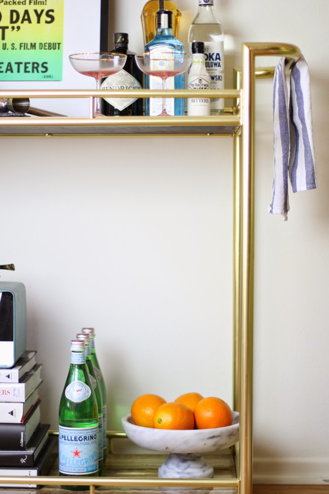 I think bar carts are so cute, and you do such a great job styling them. I wish I could have one in my place right now, but with a 16 month old whose current skill is throwing whatever he can get his hands on, this will have to be on my décor to-do list later on down the line. But I'm taking notes! 🙂