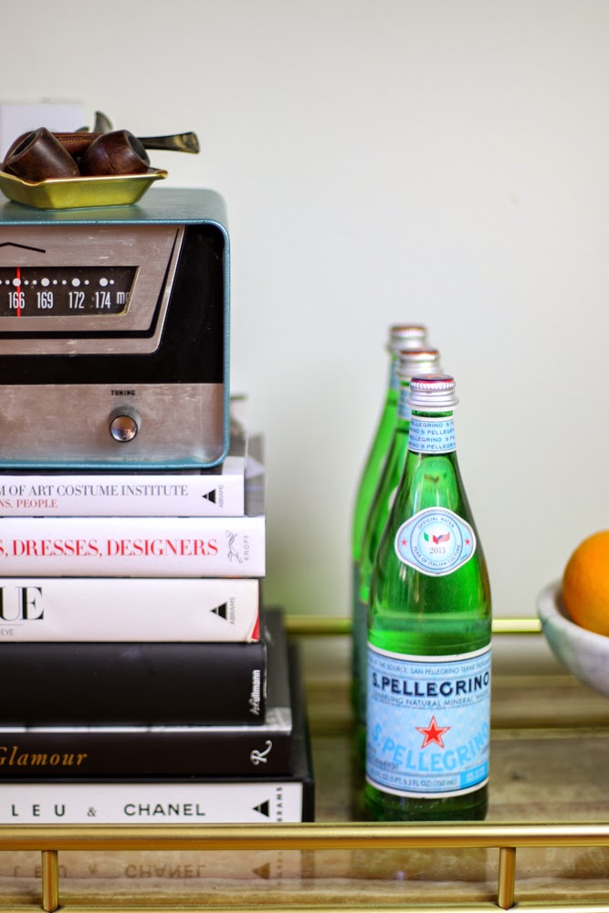 I decided to take off the lucite bottle holder to create a more clean look. But don’t worry, I kept at least 3 Pellegrino bottles handy. Duh.