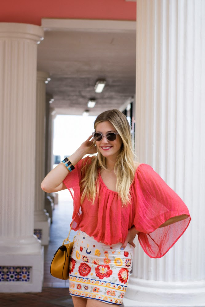 Top: L Space // Skirt: Topshop // Shoes: Souldos (also love this & this & this ) // Hat: old, similar here & here // Sunglasses: Shopbop // Bag: Chloe //