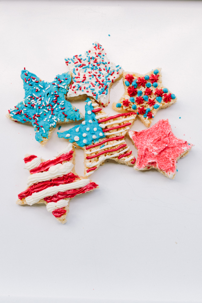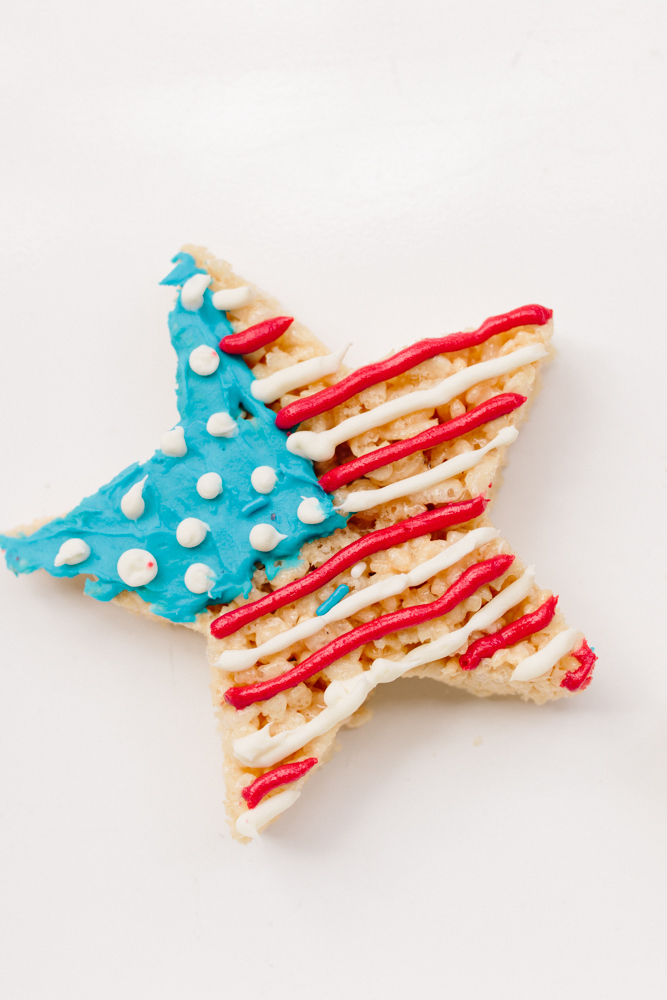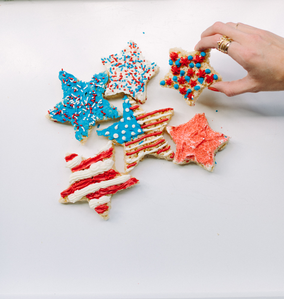 Baby you’re a star! I absolutely LIVE for Rice Krispies Treats, so I whipped up a batch of my favorite recipe (and it’s easy), used a cookie cutter to cut star shapes and had fun decorating.