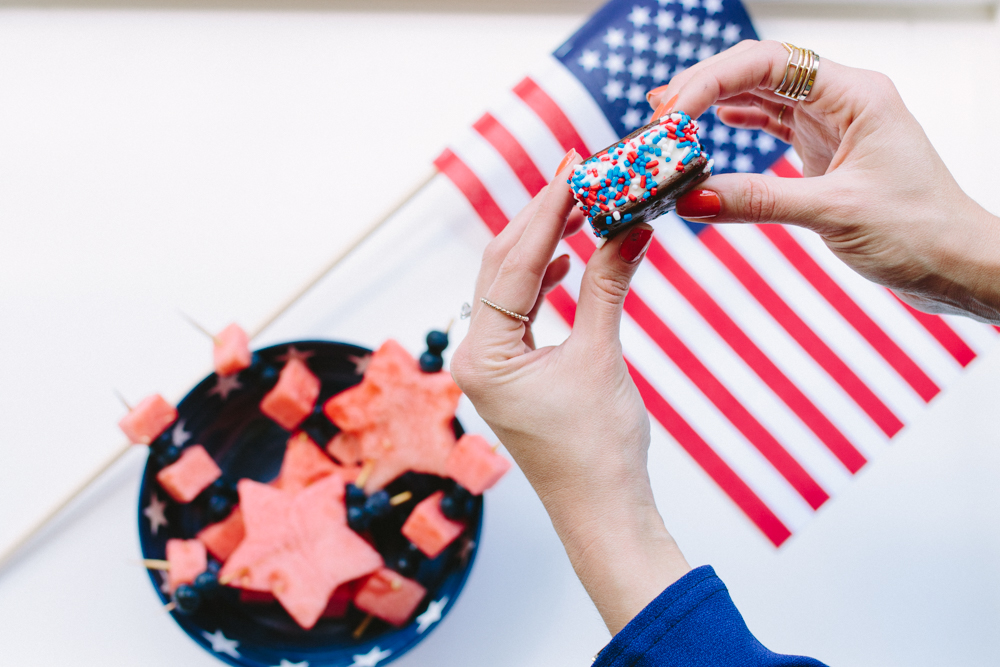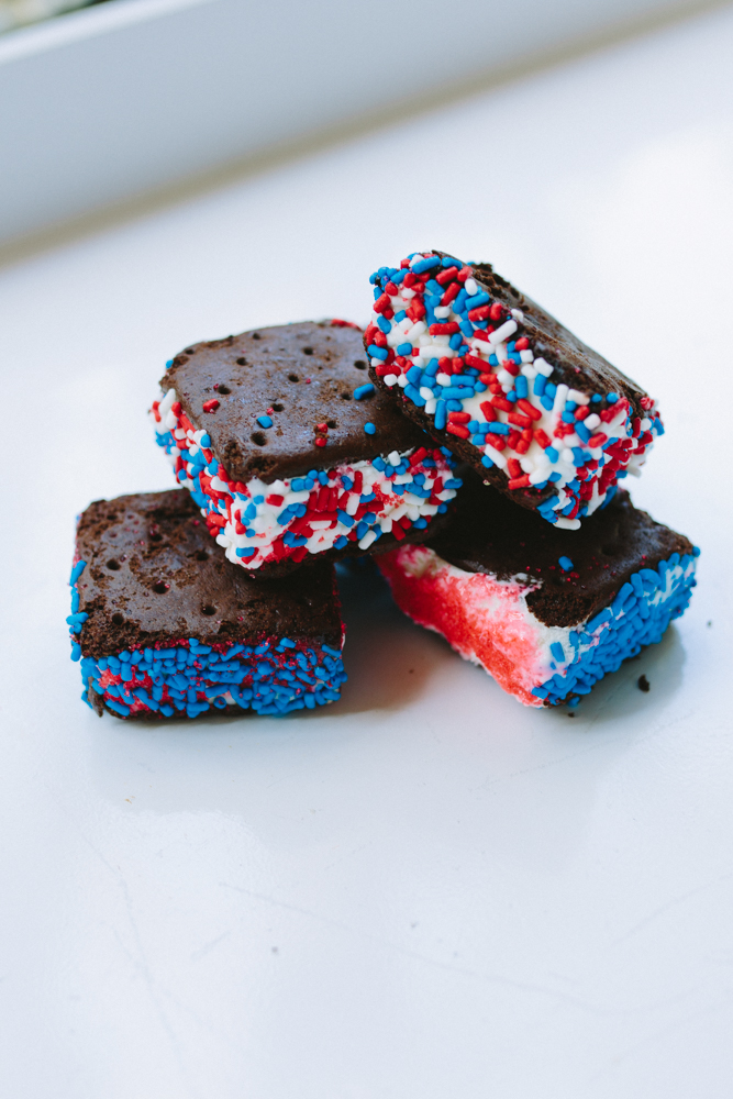 This is such an easy one, you guys. Jazz up your average ice cream sandwich with a little sprinkle action! I decided to cut mine in half first before adding sprinkles, but you can do whatever you want! Extremely easy and you’ll look way cool. You’re welcome!