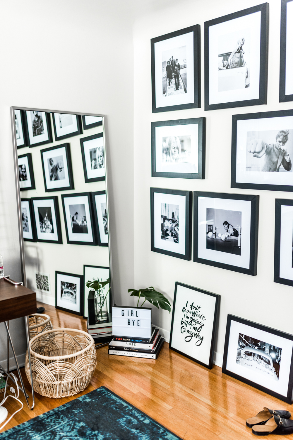 First off, I knew I wanted to have a HUGE gallery wall with my favorite vintage photos because I am so inspired by the past- Brigitte Bardot, Jane Birkin, My Beatles (favorites), Jagger, the gang’s all there. Since I chose the creative path, it’s really important I work from a space where I can fully reach my creative potential and where I don’t feel tired and uninspired. Trust me – it’s a huge deal and makes a big difference.